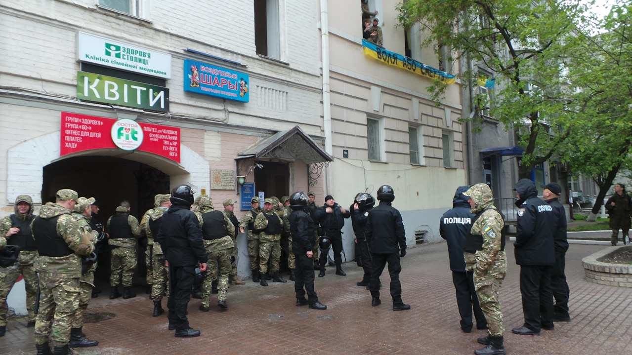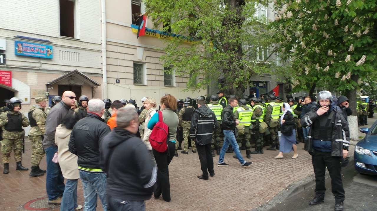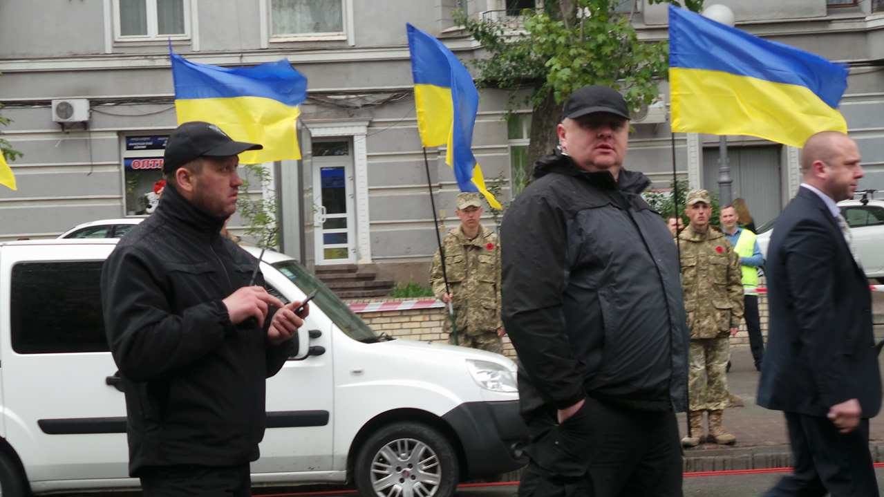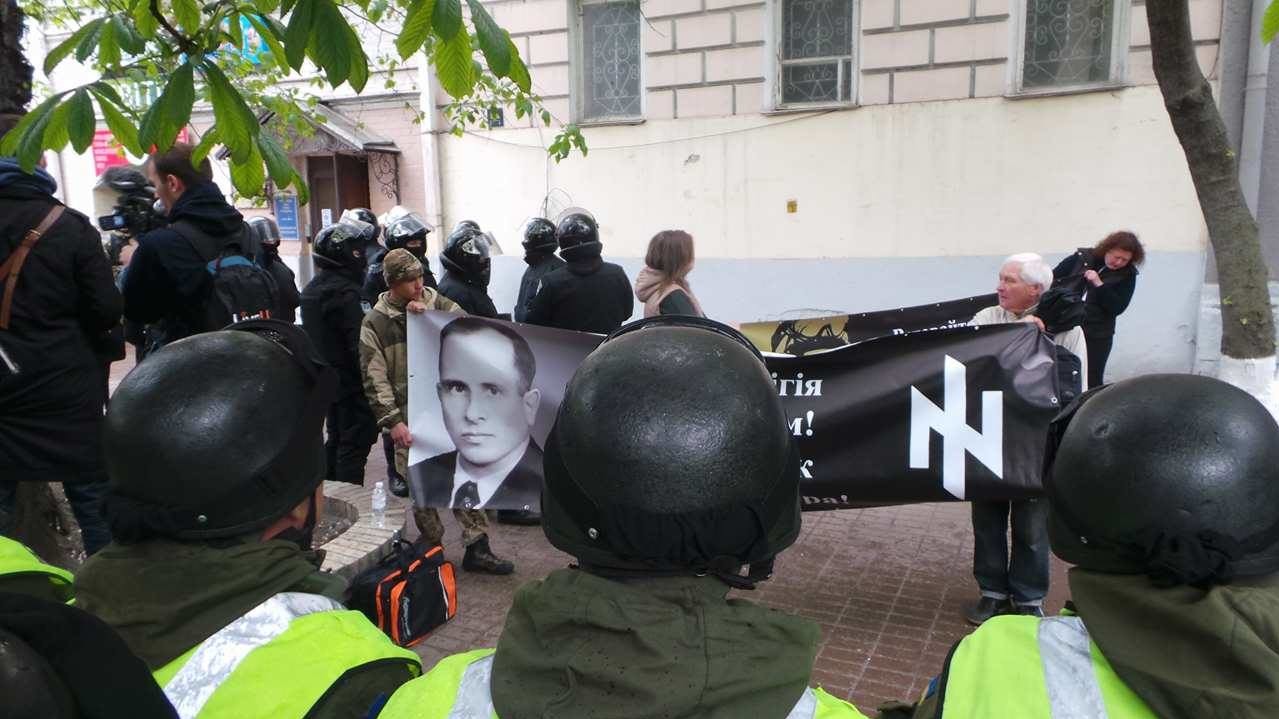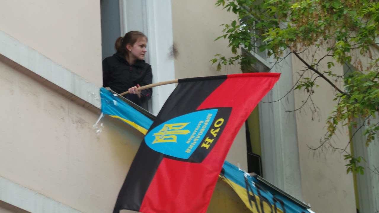 Офис находится неподалеку от Площади Славы, где происходят официальные торжества по случаю Дня победы над нацизмом во Второй мировой войне, а также на пути следования колонны "Бессмертного полка", который члены ОУН ранее призывали разогнать.