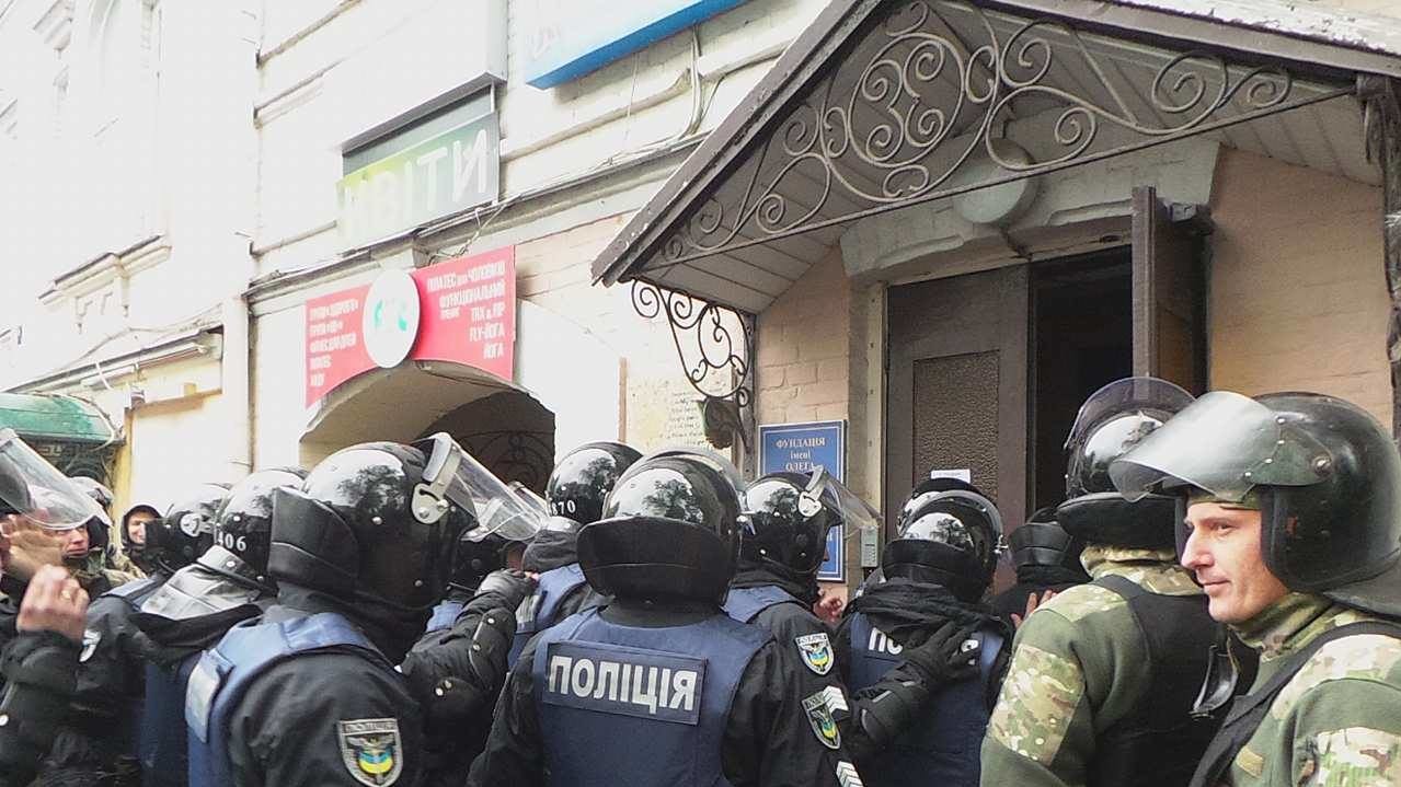 Офис Организации украинских националистов на улице Ивана Мазепы в Киеве заблокирован большим количеством правоохранителей. Группа сотрудников МВД в спецснаряжении вошла в подъезд здания, сообщает Цензор.НЕТ.