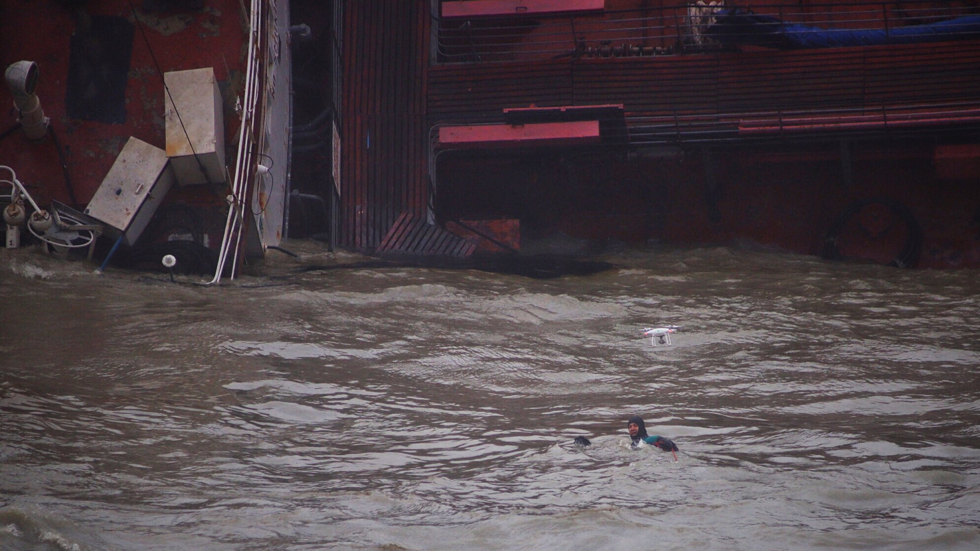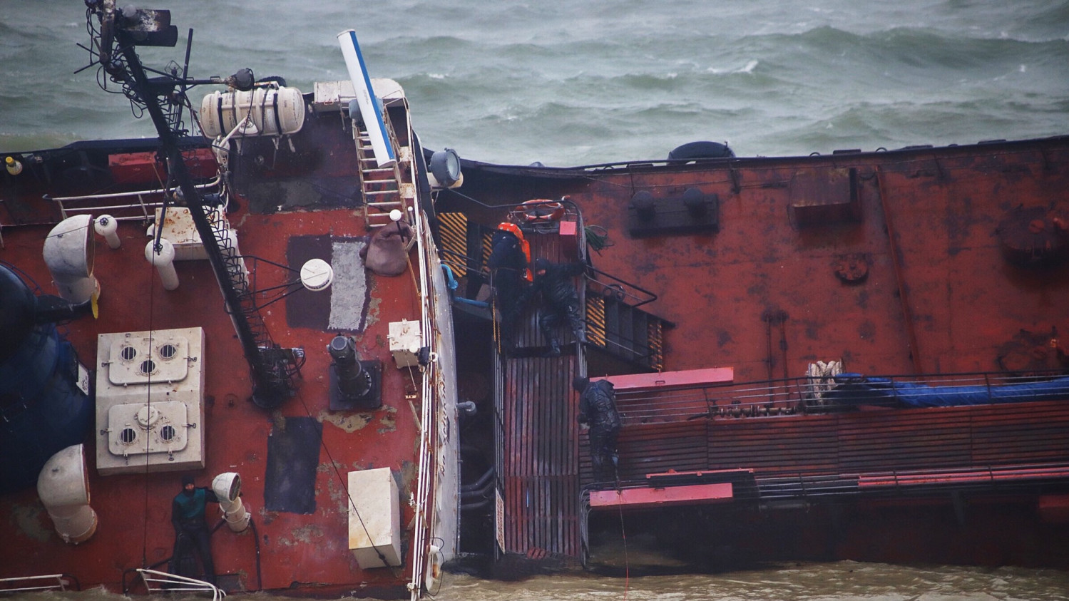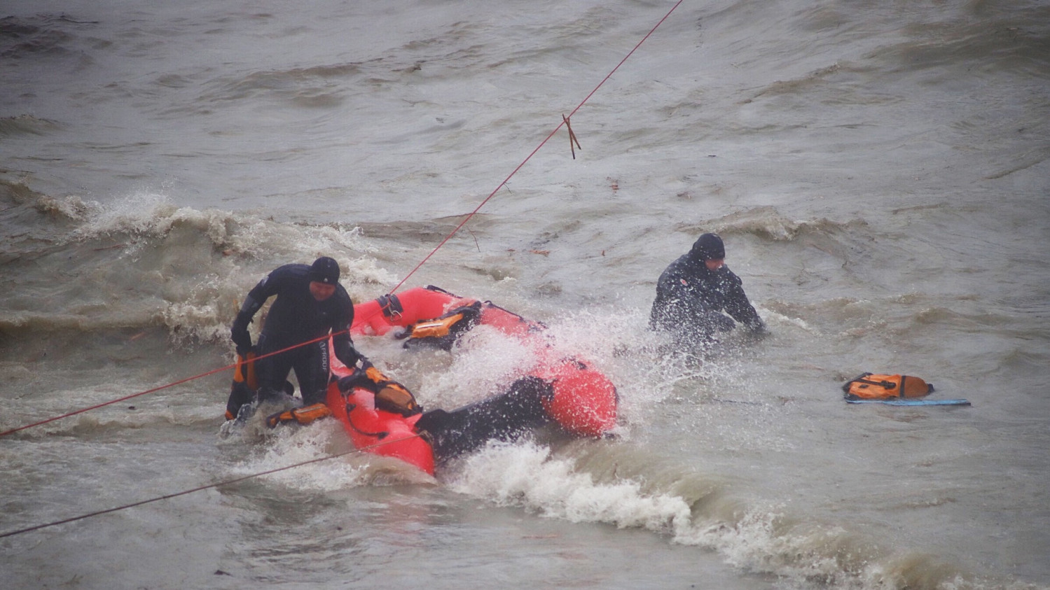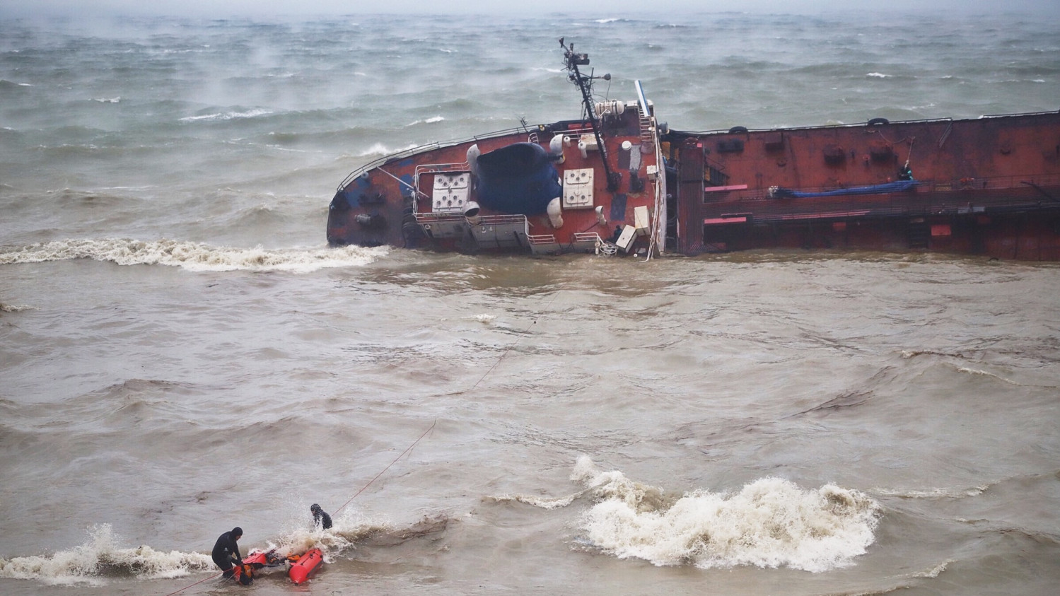 Параллельно для спасения моряков задействовали водолазов, которые доставили на борт канат и начали по одному переправлять на берег членов экипажа.