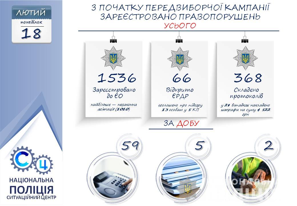 В понедельник, 18 февраля, правоохранители зарегистрировали 59 сообщений о связанных с выборами событиях, а за более чем полтора месяца предвыборной кампании – 1536 сообщений.