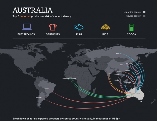Австралийская правозащитная организация Walk Free Foundation обозначила Крымский полуостров как часть Российской Федерации на интерактивной карте так называемого глобального индекса рабства Global Slavery Index, в котором указана информация о количестве людей в современном рабстве в разных странах.