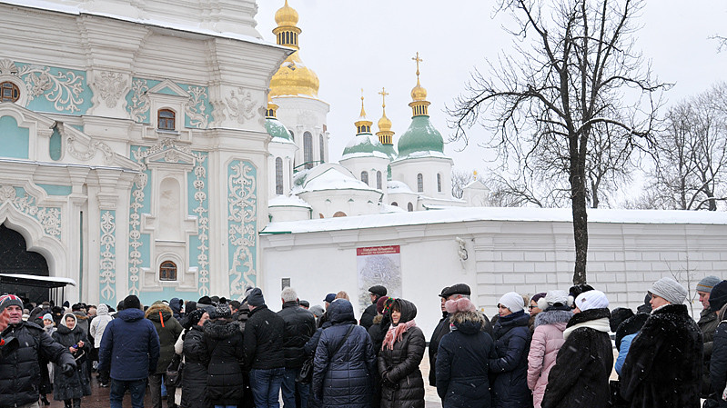 Тем временем на площади выстроилась очередь людей, желающих попасть на рождественскую литургию в Софийском соборе, которую служил митрополит Киевский и всея Украины Епифаний. Во время богослужения был представлен Томос об автокефалии Православной церкви Украины, подписанный Вселенским патриархом Варфоломеем.