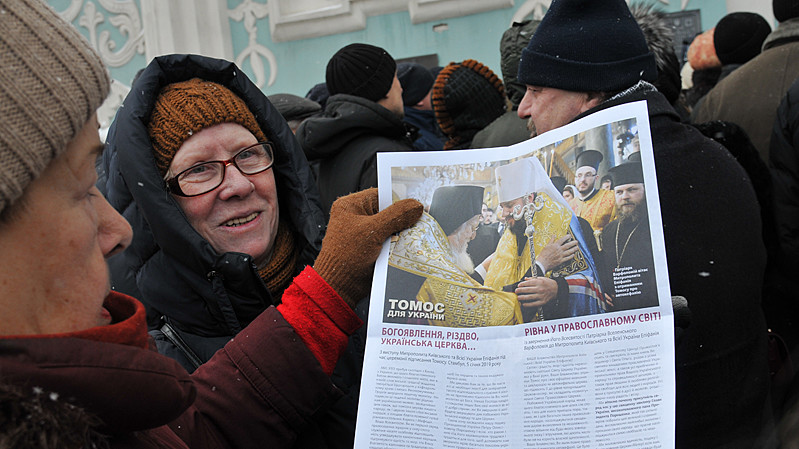 Возле храма раздавали бесплатные газеты, посвященные Томосу и украинской автокефалии.
