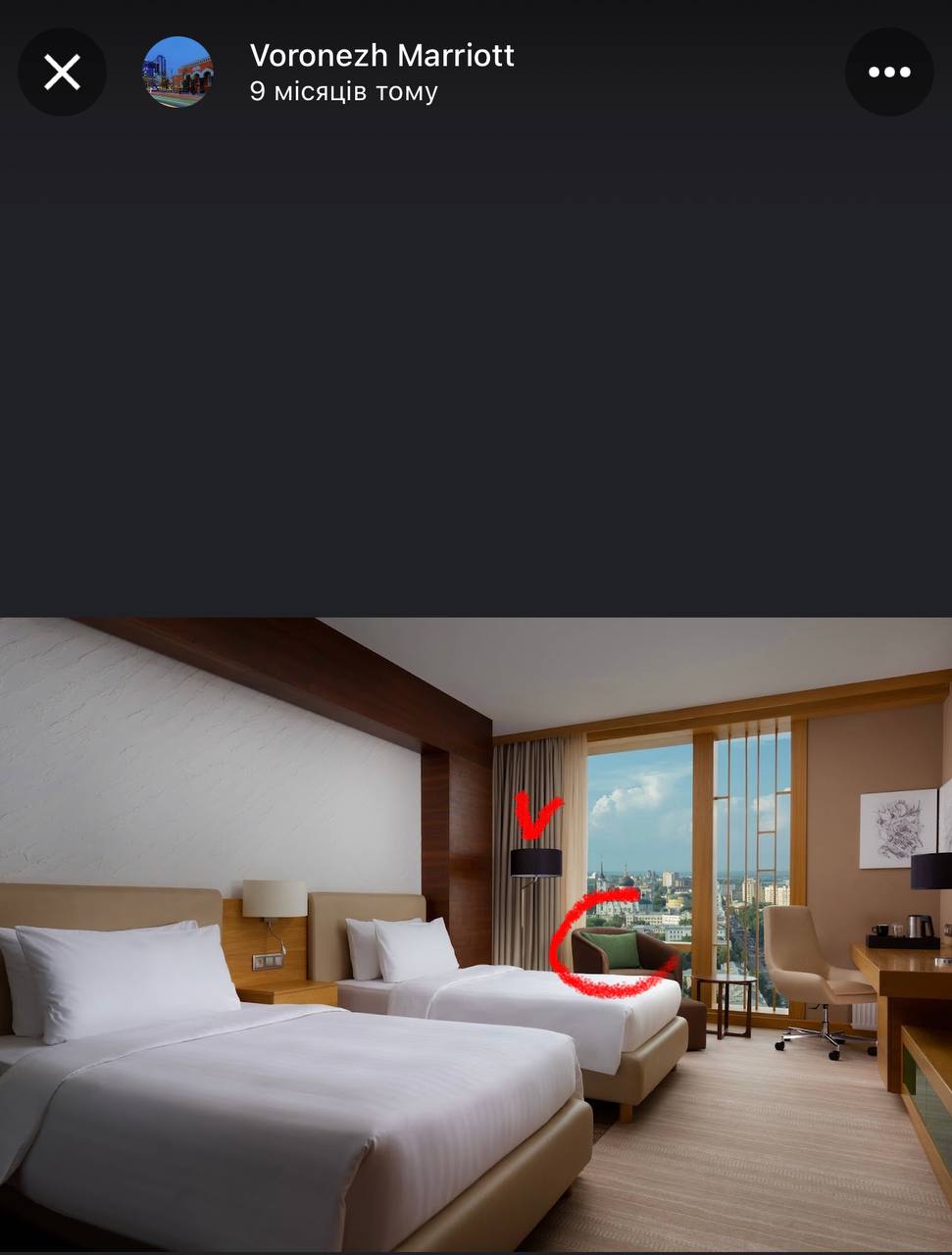 Проанализировав вид из окна, на фоне которого записал видео коллаборант, он совместно с коллегами пришел к выводу - свое видеообращение тот записывал из гостиницы Marriott в г. Воронеж на проспекте Революции, 38.