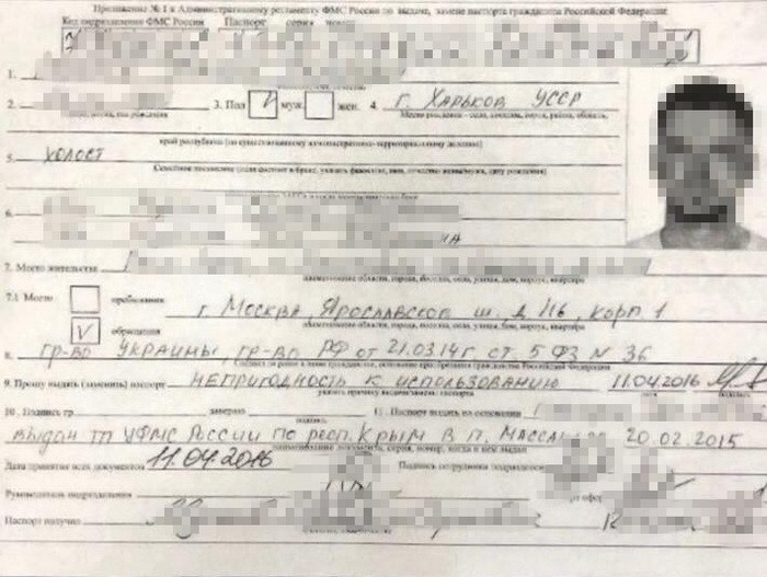 Также у чиновника обнаружили российский паспорт, которым он в феврале 2015 года пользовался на временно аннексированной территории АР Крым. В апреле 2016 года этот паспорт был изменен Управлением по вопросам миграции ГУ МВД России по г. Москва на другой, также должностному лицу был выдан заграничный паспорт гражданина РФ и ее индивидуальный налоговый номер.