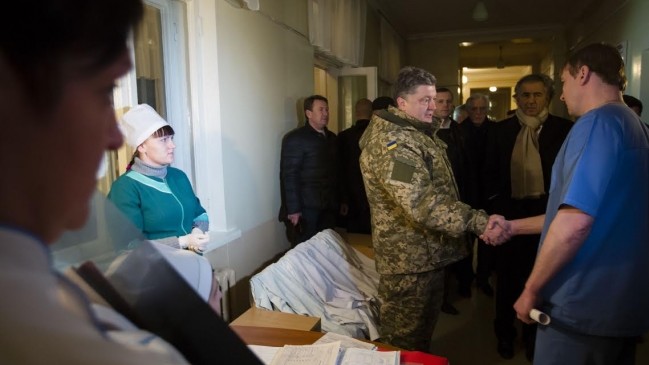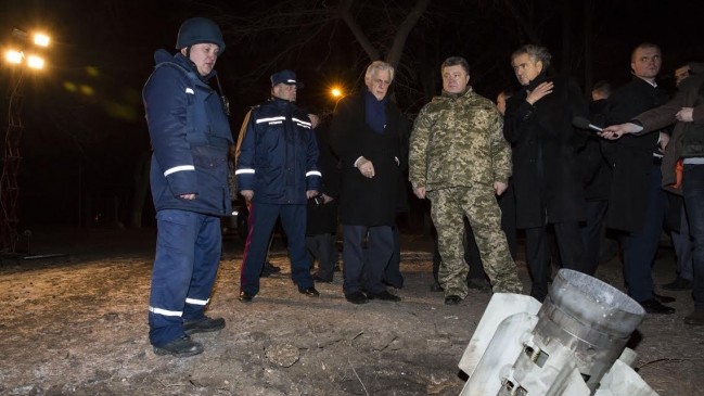 Как сообщает пресс-служба Донецкой ОГА, глава государства побывал в местах, куда попали снаряды, а также посетил пострадавших в больнице и провел совещание в штабе АТО. Донецкий губернатор Александр Кихтенко доложил президенту о последствиях обстрела жилых кварталов города, а спасатели ГСЧС проинформировали о ходе обезвреживания неразорвавшихся снарядов.