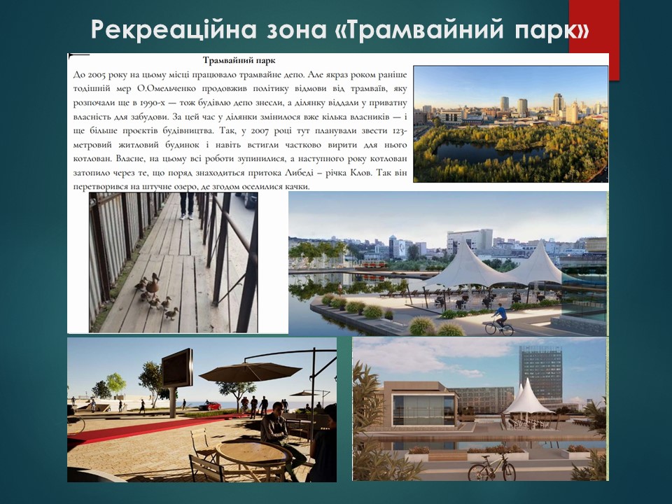 Что касается восстановления Лыбеди, то последние несколько десятков лет было крайне популярно предлагать проекты ее ревитализации, но все они были эпизодичными и бессистемными. На этом фоне комплексный проект «Регенерация реки Лыбедь в Киеве», представленный в НСАУ, является прорывом. Его цель — объединить природные и урбанистические компоненты в городе, восстановить не саму реку, а окультурить пространство вокруг нее. Лыбедь является осью притяжения, вдоль которой расположены как культурные (квартал Малевича), так и градостроительные компоненты (пакгаузы станции Киев-Товарный, памятники архитектуры государственного значения).