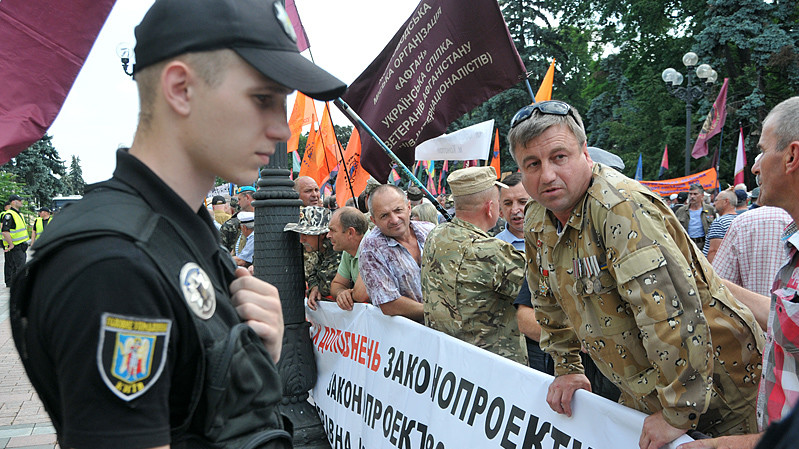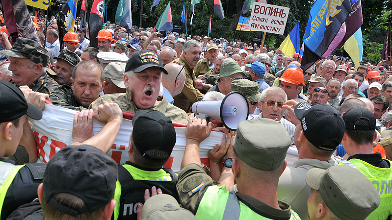 У здания Верховной Рады Украины прошла акция протеста, инициированная организациями ветеранов афганской войны, требующих сохранения своих льгот за счет бюджета Украины. Митингующие попытались прорваться к зданию Верховной рады сквозь оцепление, в сторону правоохранителей летели пустые бутылки и камни, в ответ использовался слезоточивый газ.