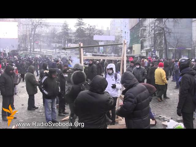 В Киеве на улице Грушевского продолжаются столкновения, количество митингующих, по состоянию на 15:15, составляет около 3 тыс. человек. Активисты начали строить катапульту для противостояния с бойцами "Беркута".