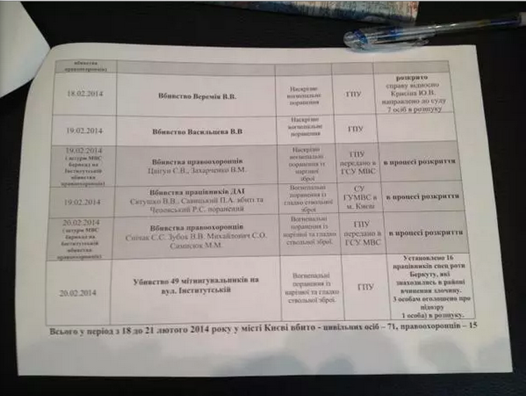 Советник министра внутренних дел Антон Геращенко обнародовал также детали других расследований преступлений, совершенных 18-20 февраля на Майдане. В частности, по его информации, в ночь на 18 февраля на Институтской погибли 13 человек.