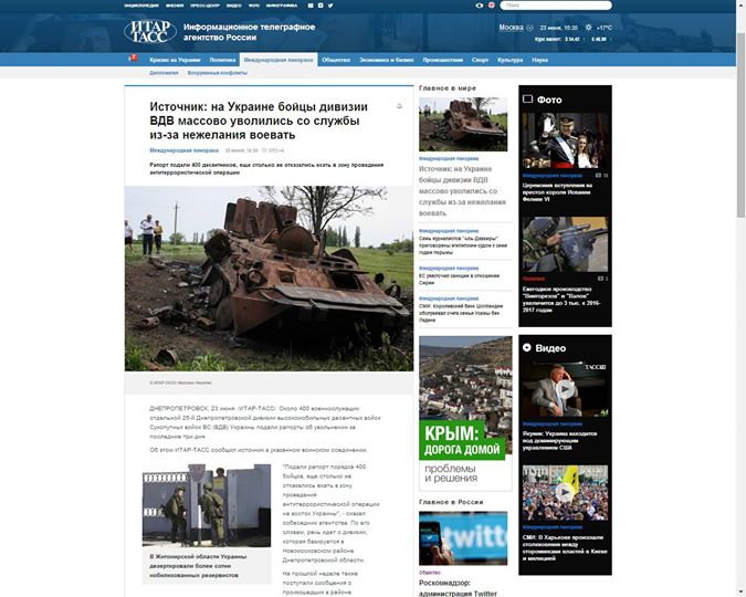 Российское государственное информагентство ИТАР-ТАСС распространило ложную информацию об увольнении украинских десантников, не угадав ни названия части, ни даже вида воинского соединения.