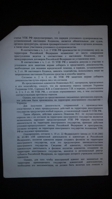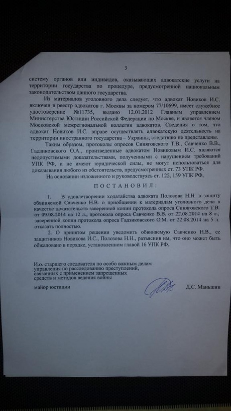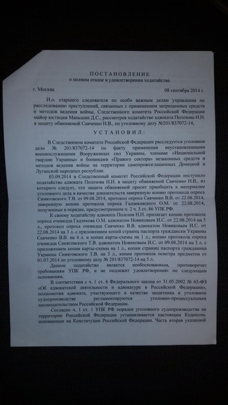 Другой адвокат Савченко Николай Полозов сообщил, что СК РФ отказался приобщить доказательства невиновности украинки к делу. По его словам, защита обжалует в судебном порядке, в самое ближайшее время.