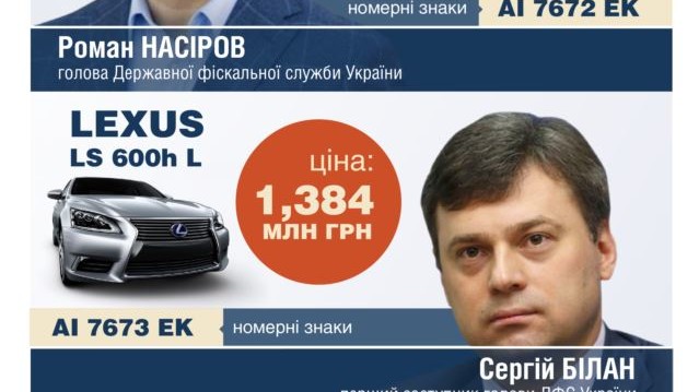 Журналисты зафиксировали, что в рабочее время Насиров и Ликарчук пользуются "Лексусами" производственно-коммерческой фирмы "Рута", созданной профсоюзами фискальной службы.
