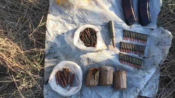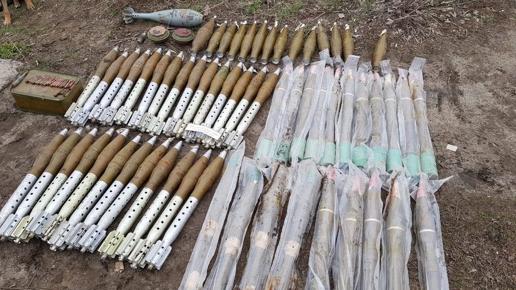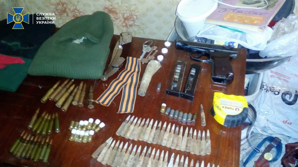С октября 2019 года по апрель 2020-го было ликвидировано на территории Луганской и Донецкой областей несколько тайников "группы Бергмана". Из тайников изъято, в частности, самодельное взрывное устройство, которое состояло из корпуса огнетушителя и взрывчатого вещества, что составляет почти 2 килограмма в тротиловом эквиваленте, 17 гранат РГД-5 и Ф-1, 400 граммов тротила, 3 мины ПМН, 2 выстрела ВОГ- 25 и 40 РПГ-7, автомат Калашникова с четырьмя магазинами, пистолет марки "Star model B", 6 универсальных запалов к ручной гранате УЗРГМ-2, более 2 тысяч боевых патронов различного калибра.