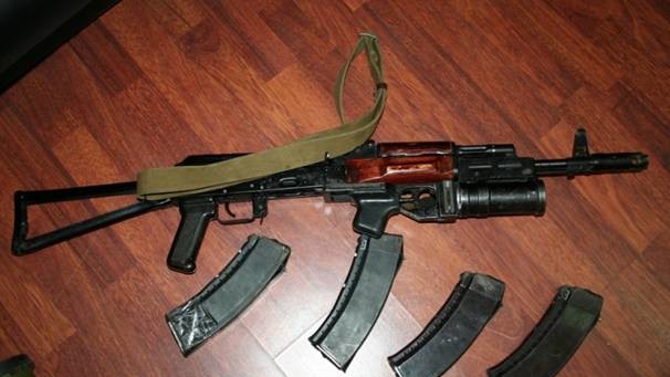 У задержанного изъят автомат Калашникова АК-74 с подствольным гранатометом, магазинами и патронами к нему, ручной противотанковый гранатомет РПГ-26 "Муха".