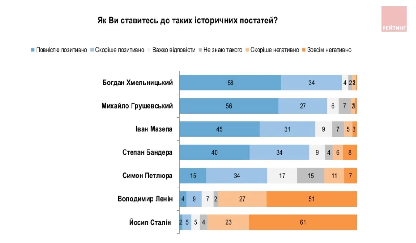 А вот к советским руководителям отношение было отрицательным в течение всего последнего десятилетия. Еще больше оно ухудшилось в 2022 году. Так, за последние 5-8 лет отношение к Ленину стало хуже вдвое, к Сталину – втрое. В частности, сегодня положительно к Ленину относятся только 13% украинцев, а Сталину – 7%.