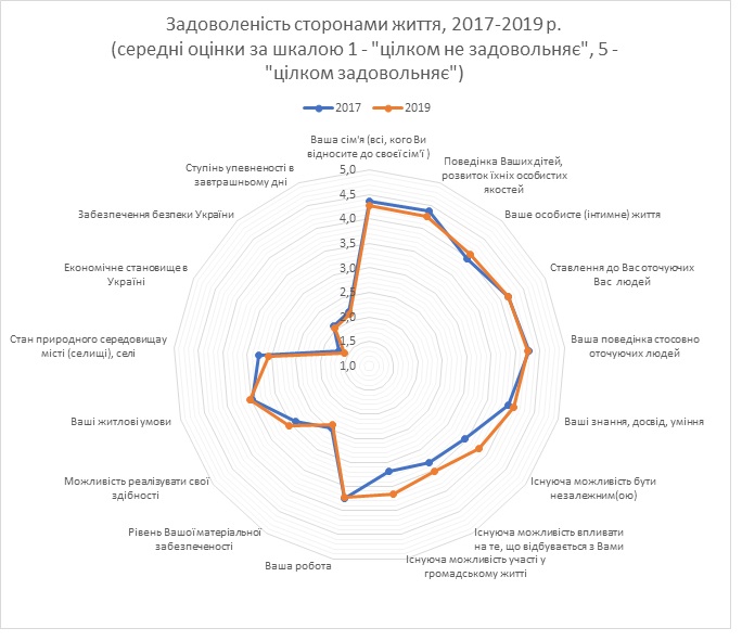 Но все больше украинцы не довольны экологической ситуацией – уровень удовлетворенности состоянием окуржающей среды снизился с 3,3 до 3,1 баллов (44% в 2017 году, 42% - в 2019, не удовлетворены – 26% и 36% соответственно).