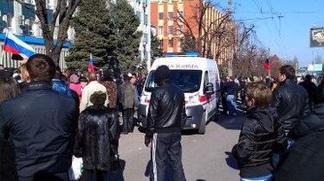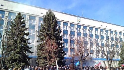Толпа выбила двери и ворвалась в здание. Двери буквально снесли, сообщает сайт "Восточный вариант".