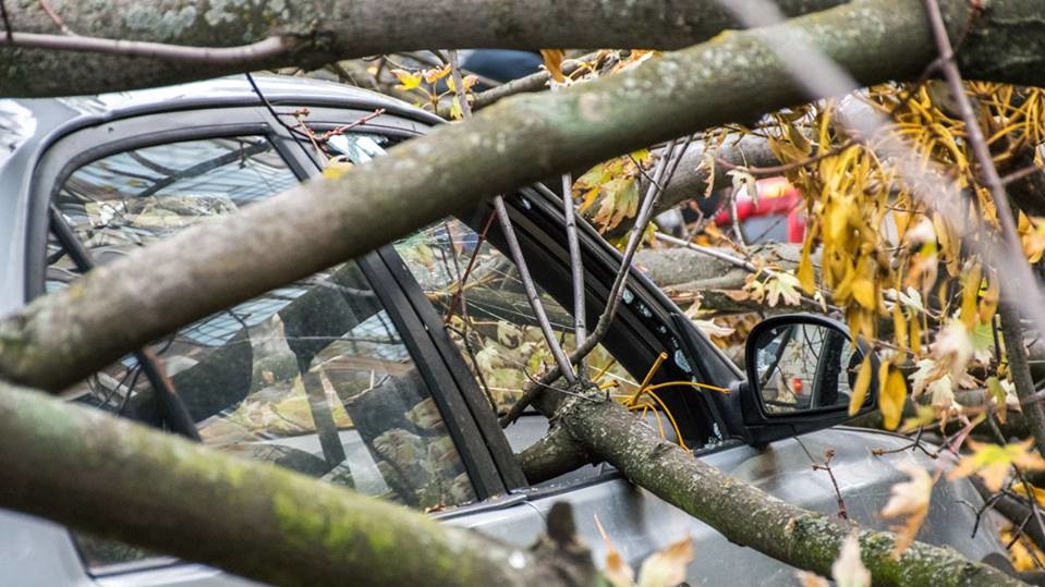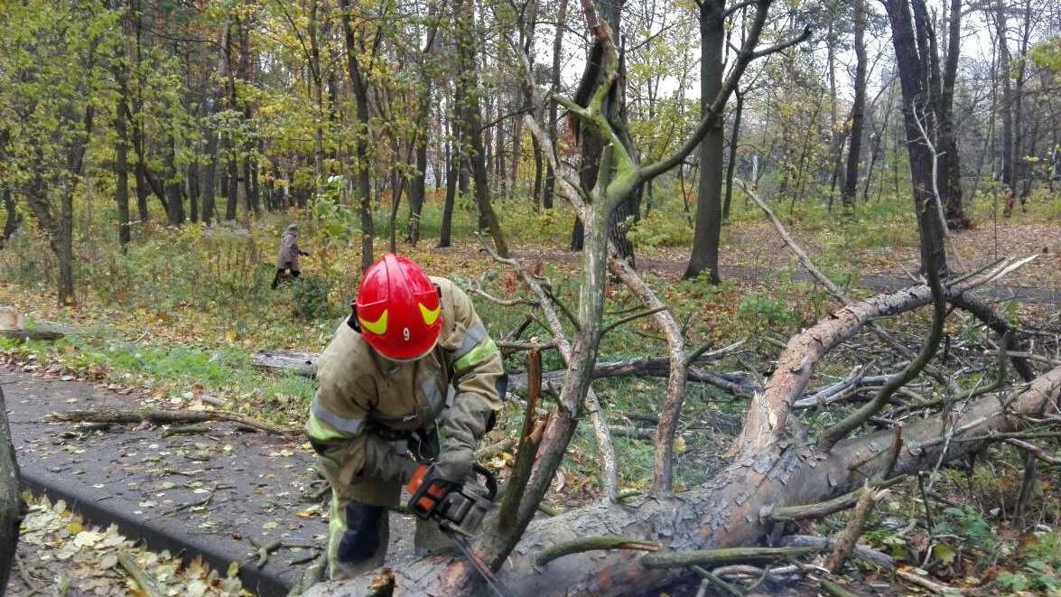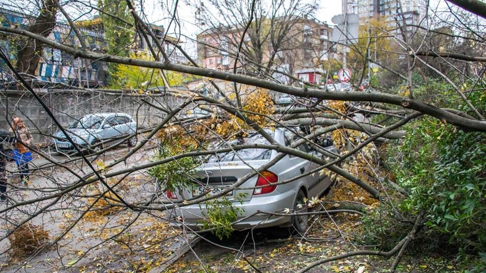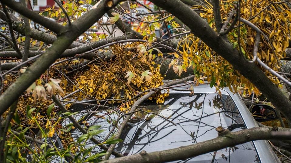 В Киеве на улице Иоанна Павла II в Голосеевском районе упавшее дерево разбило автомобиль и оборвало провода, а на улице Петрицкого в Святошине - разрушило часть забора и перекрыло дорогу автотранспорту, передает Информатор. Проезжую часть освобождали от дерева при помощи бензопил и спецтехники. Люди не пострадали. По словам спасателей, данные происшествия произошли по причине резкого ухудшения погоды и сильного ветра.