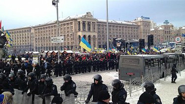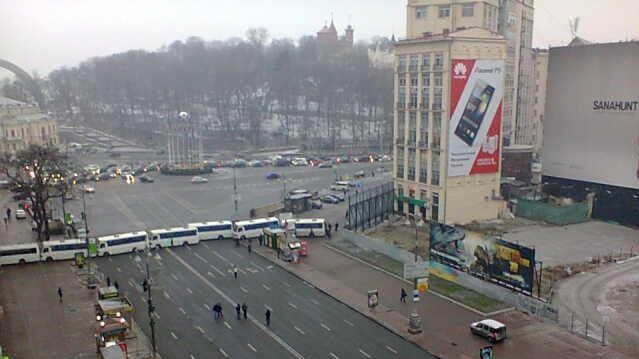 Доступ к Майдану Независимости, где расположился лагерь активистов Евромайдана, со стороны Европейской площади перекрыли шесть автобусов с бойцами спецподразделений.
