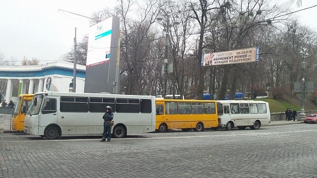 Вдоль улицы Грушевского под Верховной Радой и во дворе парламента стоят около двадцати милицейских автобусов. По периметру двора Верховной Рады выставлено милицейское оцепление. Еще несколько милицейских автобусов стоят на улице Шелковичной. !zn
