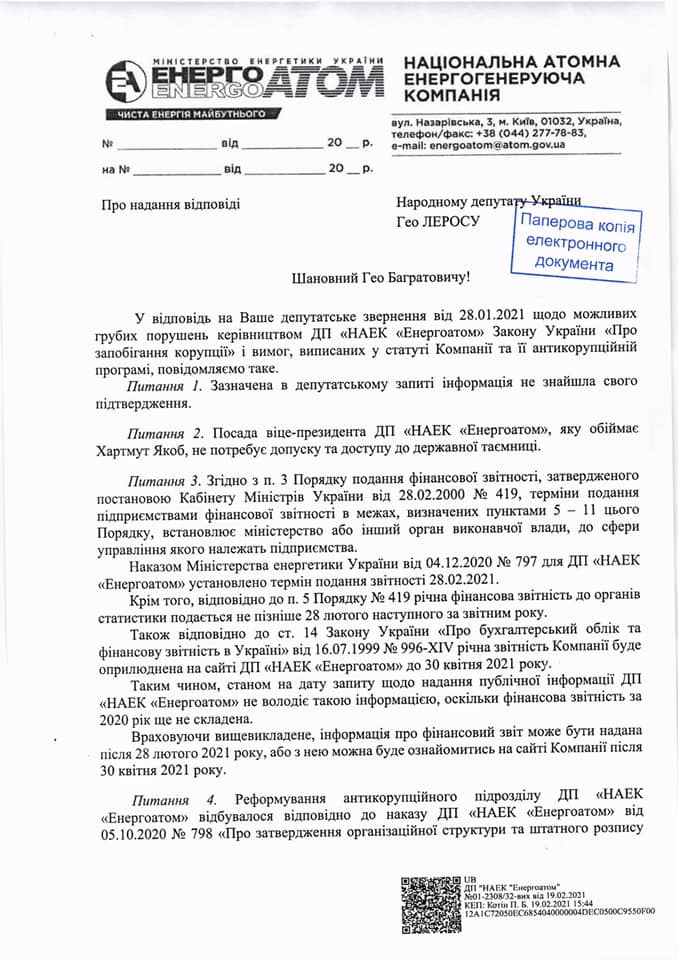 Лерос опубликовал ответ на свое обращение из Офиса Генерального прокурора: