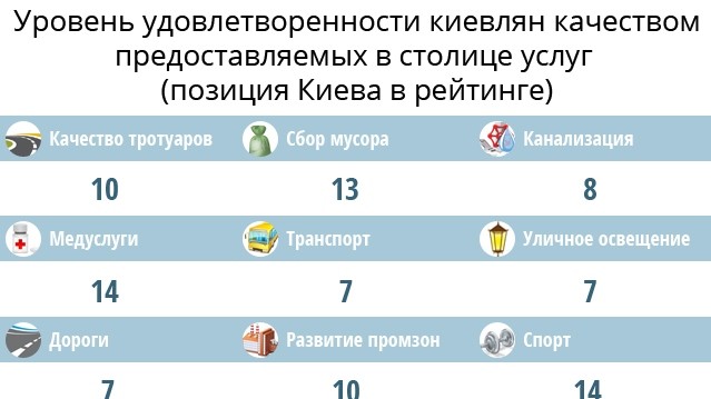 Киев занял 14-ю строчку рейтинга, существенно отстав от лидеров по всем критериям. По мнению исследователь такая низкая позиция столицы объясняется тем, что в Киеве уровень жизни и запросы гораздо выше, чем в регионах.