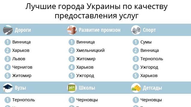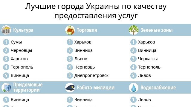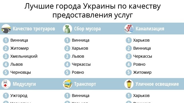 Винница вошла в тройку лидеров по 13 показателям из 18 критериев, а Харьков лидирует в 14 номинациях.