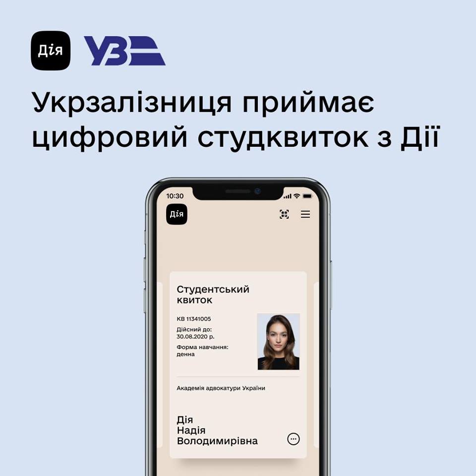 При посадке в поезд студенты вместо пластикового оригинала могут предъявить цифровой студенческий документ с мобильного приложения "Дія", который так же дает право на льготу в 50%, сообщает пресс-служба «Укрзалізниці».