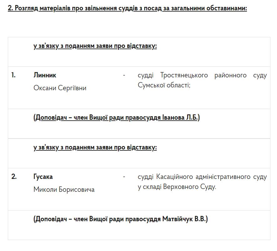 Судья Верховного Суда Николай Гусак подал в отставку. Об этом свидетельствует повестка дня заседания Высшего совета правосудия на 7 сентября.