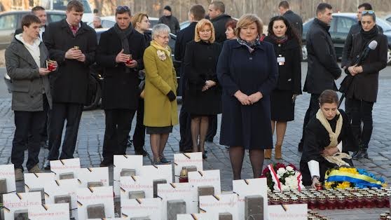 Марина Порошенко поблагодарила польский народ за поддержку и помощь: "К сожалению, нашу страну постигла беда, но в это тяжелое время мы нашли настоящего друга. Мы очень благодарны за вашу помощь". Также она выразила слова благодарности семьям героев Небесной сотни за все, что они сделали для Украины: "Именно вы являетесь элитой нашей нации. Ваши родные - герои Небесной Сотни - являются примером для тех ребят, которые сейчас отстаивают суверенитет Украины. Именно они их поддерживают с небес. Пройдут годы, будут развивать страну новые люди, но память о подвиге Небесной сотни останется в наших сердцах вечно".