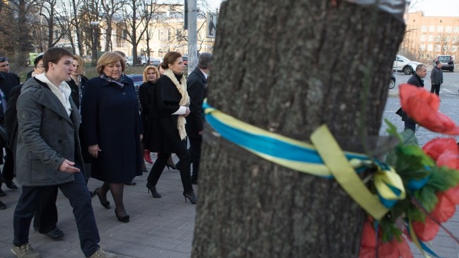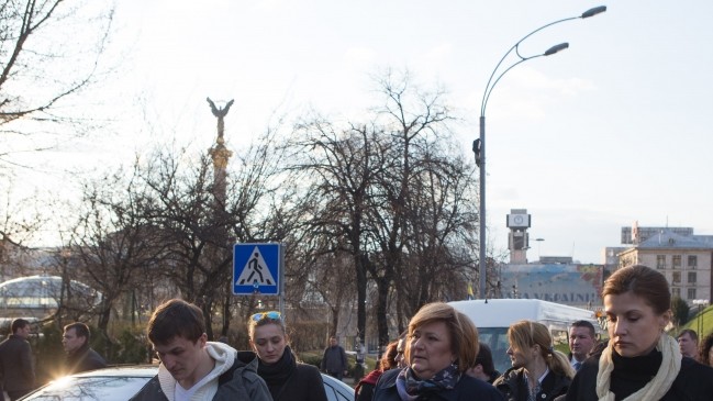 Также супруги президентов, вместе с участниками встречи, прошли по улице Институтской, где были расстреляны Герои Небесной Сотни, и почтили память погибших возле памятного Креста.