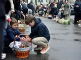 Также освящение пасхальных корзин началось с вечера, 11 апреля. Фотокорреспондент ZN.UA Василий Артюшенко побывал возле Владимирского Собора, где собрались десятки киевлян.