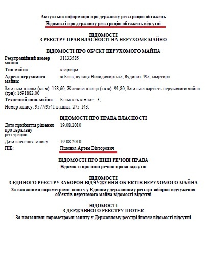 Сын экс-генпрокурора Артем Пшонка, будучи в розыске, продал принадлежащую ему трехкомнатную квартиру квартиру в центре Киева, расположенную в доме по ул.Владимирской, 49-а.