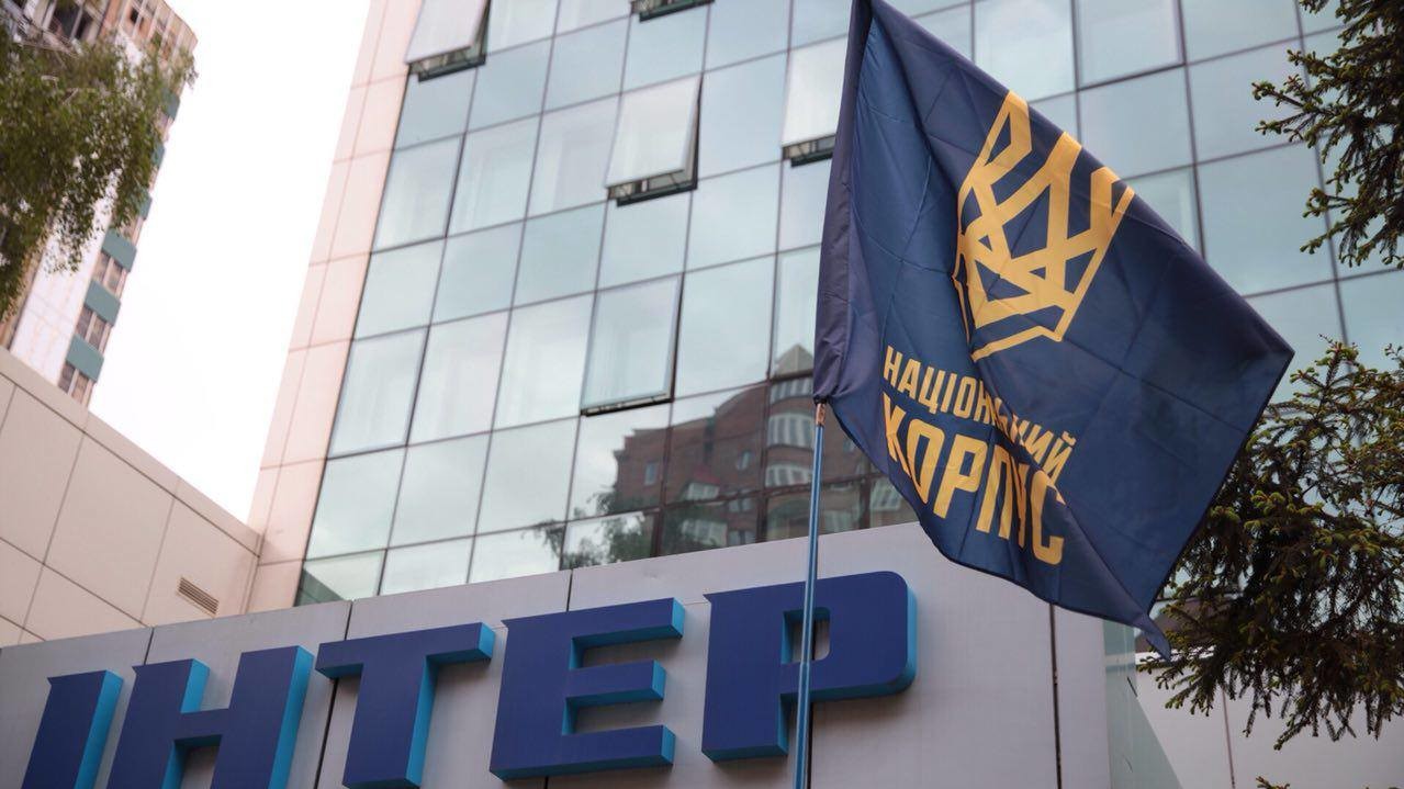 С утра 9 мая несколько десятков активистов "Национального корпуса", "Национальных дружин" и других патриотических организаций заблокировали здание телеканала "Интер". Они требуют лишить лицензии "канал олигарха-коллаборанта Левочкина, в эфире которого системно проводится антиукраинская редакционная политика". Кроме того, националисты требуют, чтобы из эфирного плана на 9 Мая были изъяты "пропагандистские заявления, озвученные ведущими концерта в видеофрагменте, который попал в интернет", – говорится в сообщении на странице "Национального корпуса" на Facebook.