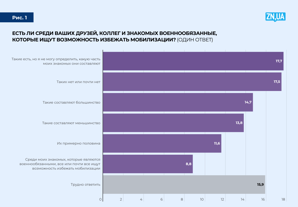 В рамках опроса граждан спросили: «Есть ли среди ваших друзей, коллег и знакомых военнообязанные, которые ищут возможность избежать мобилизации?»