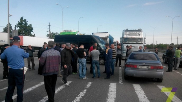 Около сотни большегрузных автомобилей заблокировали движение по трассе "Киев – Одесса" в направлении Одессы с самого утра в субботу, 14 мая.