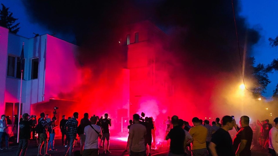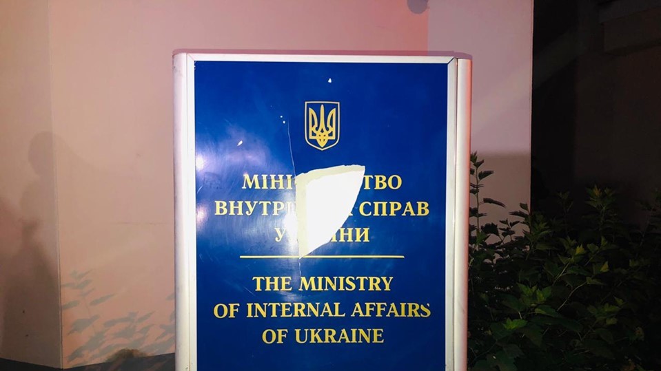 Ближе к завершению акции протестующие зажгли файера и начали скандировать "Авакова в отставку", "Рядовые убивают, Аваков покрывает". На асфальте перед входом в здание активисты написали красной краской "Убийцы".