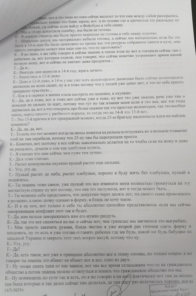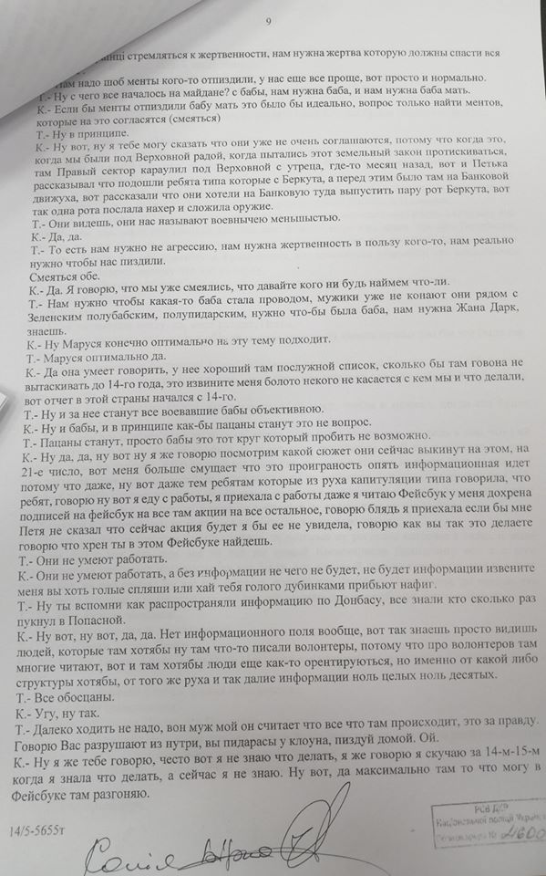 "На брифинге МВД, а затем и в суде было публично открыто разговор Юлии Кузьменко с лицом Т, в котором говорится про Марусю Зверобой, где якобы Юля что-то страшное задумывает против Маруси и ее деток! А теперь внимание, расшифровка разговора с контекстом, в котором об этом говорилось. И пусть мне кто скажет, что это не политическое дело и не расправа...", - написал он в Facebook в четверг, 26 декабря.