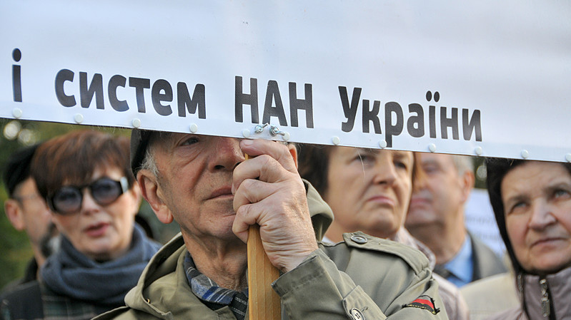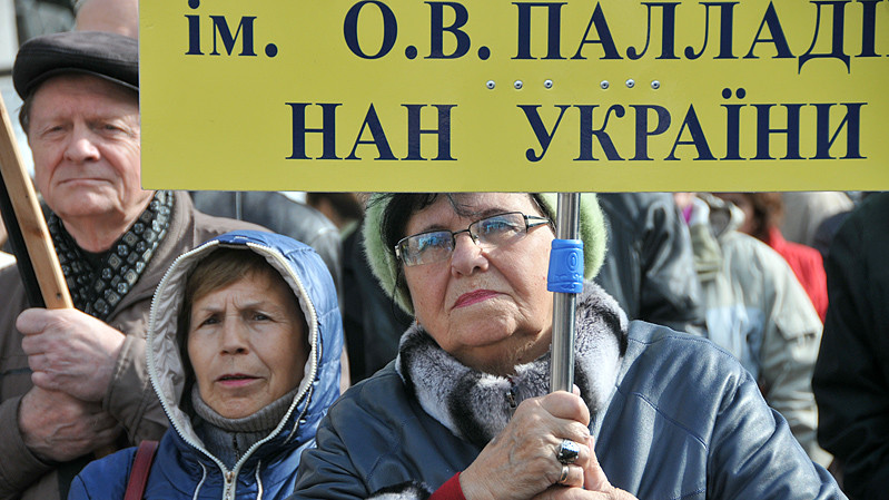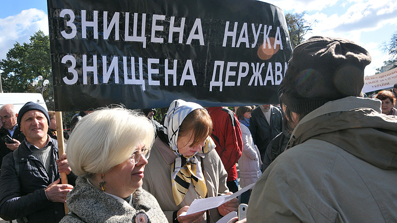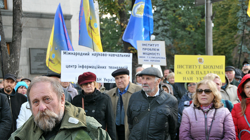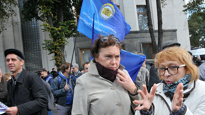 Возле Верховной Рады профсоюз работников Национальной академии наук Украины провел митинг протеста под лозунгом: "100-летний юбилей НАН Украины: ода или реквием?" В нем приняли участие около 400 ученых из разных институтов НАНУ.