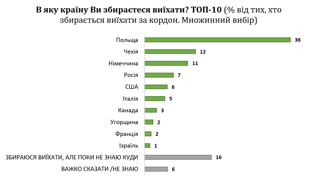 В апреле 2018 года собираются выехать за границу с целью длительного пребывания 7% украинцев. Страна, в которой собирается наибольшая доля среди желающих, это Польша (36%), свидетельствуют данные опроса Киевского международного института социологии.