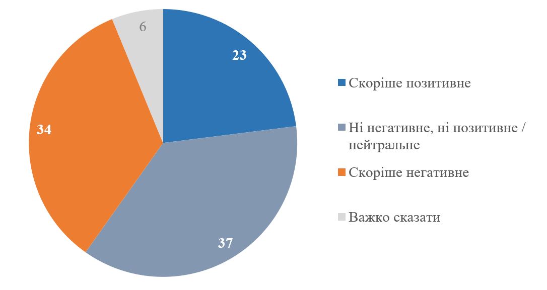 При этом согласно данным опроса, 34% украинцев за рубежом имеют негативное отношение к законопроекту. Положительное впечатление о нем складывается у 23% респондентов. Затруднились выразить четкое мнение и выбрали вариант «трудно сказать» 6% респондентов.