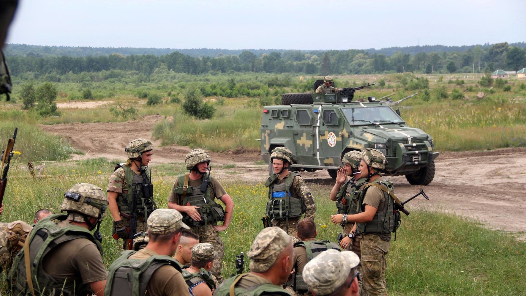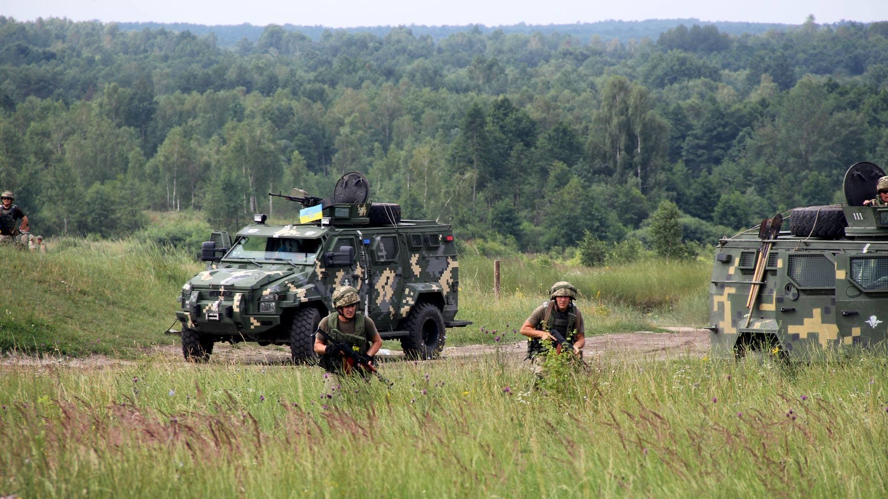 Десантные войска должны были захватить участок местности с укрепленным опорным пунктом, который якобы находится под контролем группировки боевиков "Red Dogs". Роль противника взяли на себя курсанты военных академий из Одессы и Львова.