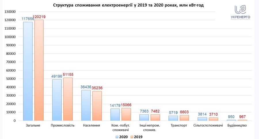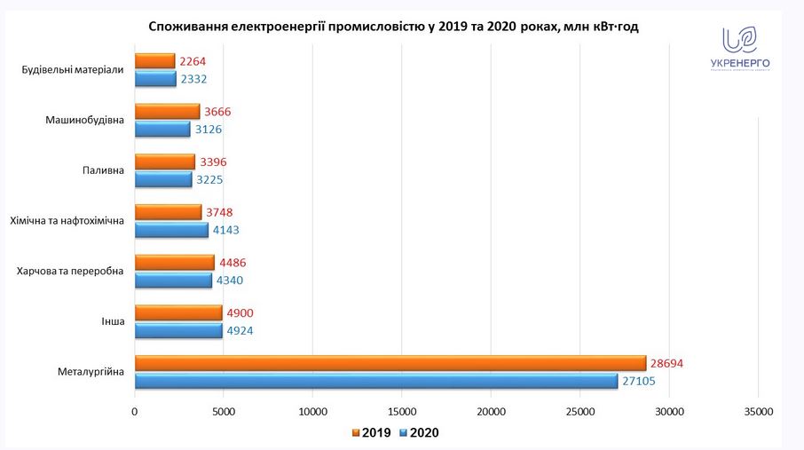 Потребление электроэнергии в промышленности 2020 года по сравнению с 2019 годом снизилось на 3,8%. В частности, машиностроительная отрасль сократила потребление электроэнергии на 14,7%, транспорт - на 13,4%, коммунальные предприятия - на 5,9%, металлургия - на 5,5%.