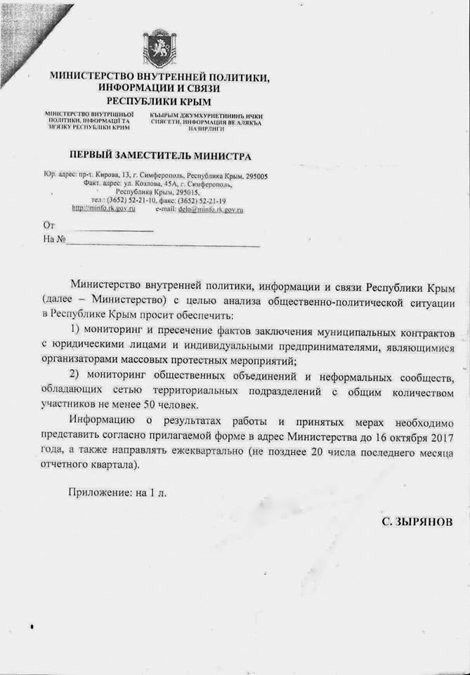 "С целью анализа общественно-политической ситуации в Республике Крым просим обеспечить: