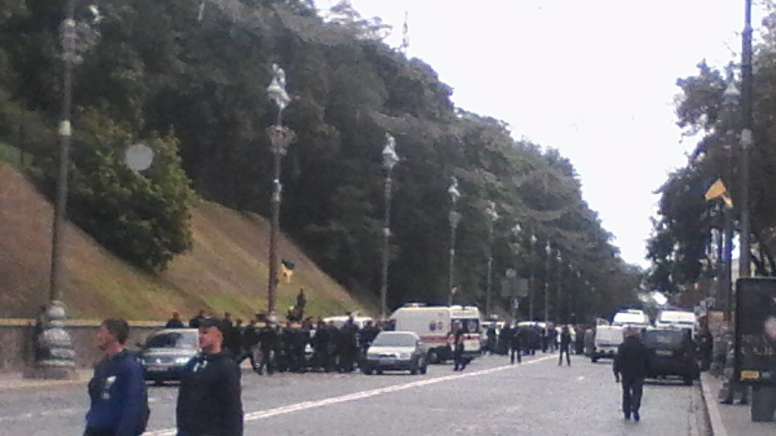 На улице Грушевского в центре Киева произошел взрыв, в результате которого пострадали по меньшей мере два человека.