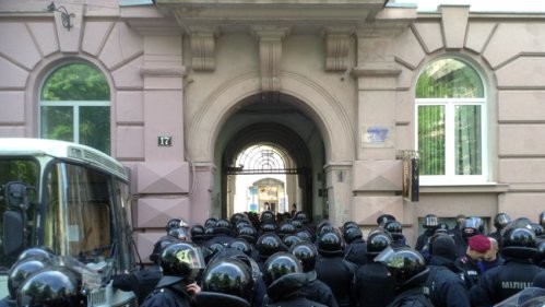 На площадь Маланюка, где и расположен памятник Тудору, вызвали около 80 спецназовцев, которые загнали активистов в подъезд близлежащего дома. После переговоров с полицией активисты пообещали не разрушать сегодня памятник.