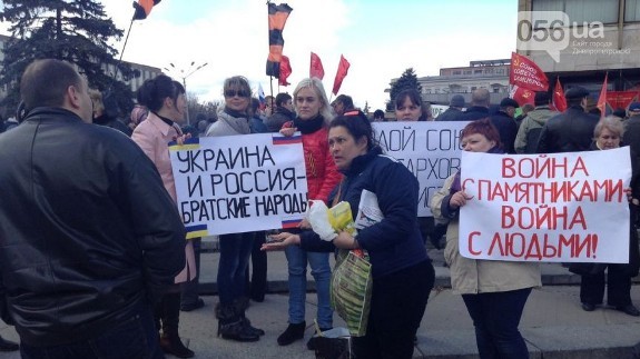В Днепропетровске на площади возле Оперного театра собралось около трех сотен митингующих, которые выступают в поддержку России.