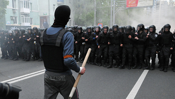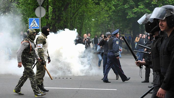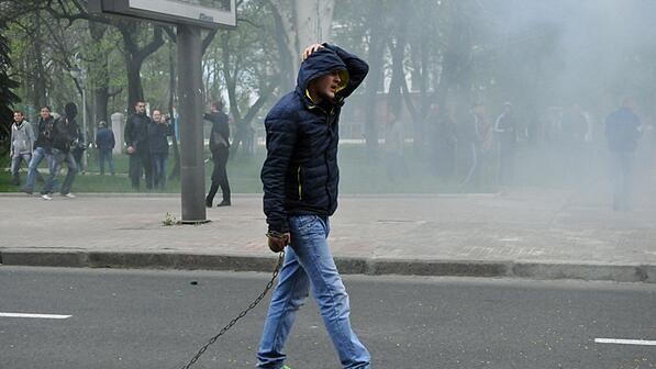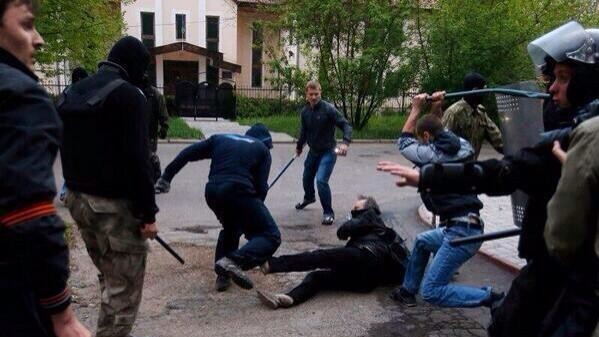 Около 18:50 на них напали люди в камуфляже. Участники мирного шествия начали уходить, но за ними погнались сепаратисты и начали избивать. Милиция практически бездействовала.