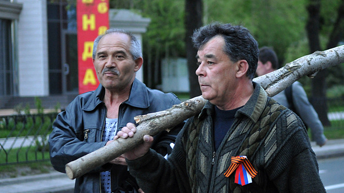 Несколько десятков участников мирного митинга за единую Украину в Донецке оказались в больницах после нападения на них людей с битами и власовскими ленточками.